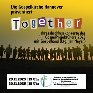 Der GospelProjektChor lädt herzlich zu seinen Abschlusskonzerten am Samstag, 29. November 2025 um 19 Uhr und am Sonntag, 30. November 2025 um 18 Uhr ein. Traditionell finden die Konzerte am 1. Adventswochenende statt – so auch in diesem Jahr.